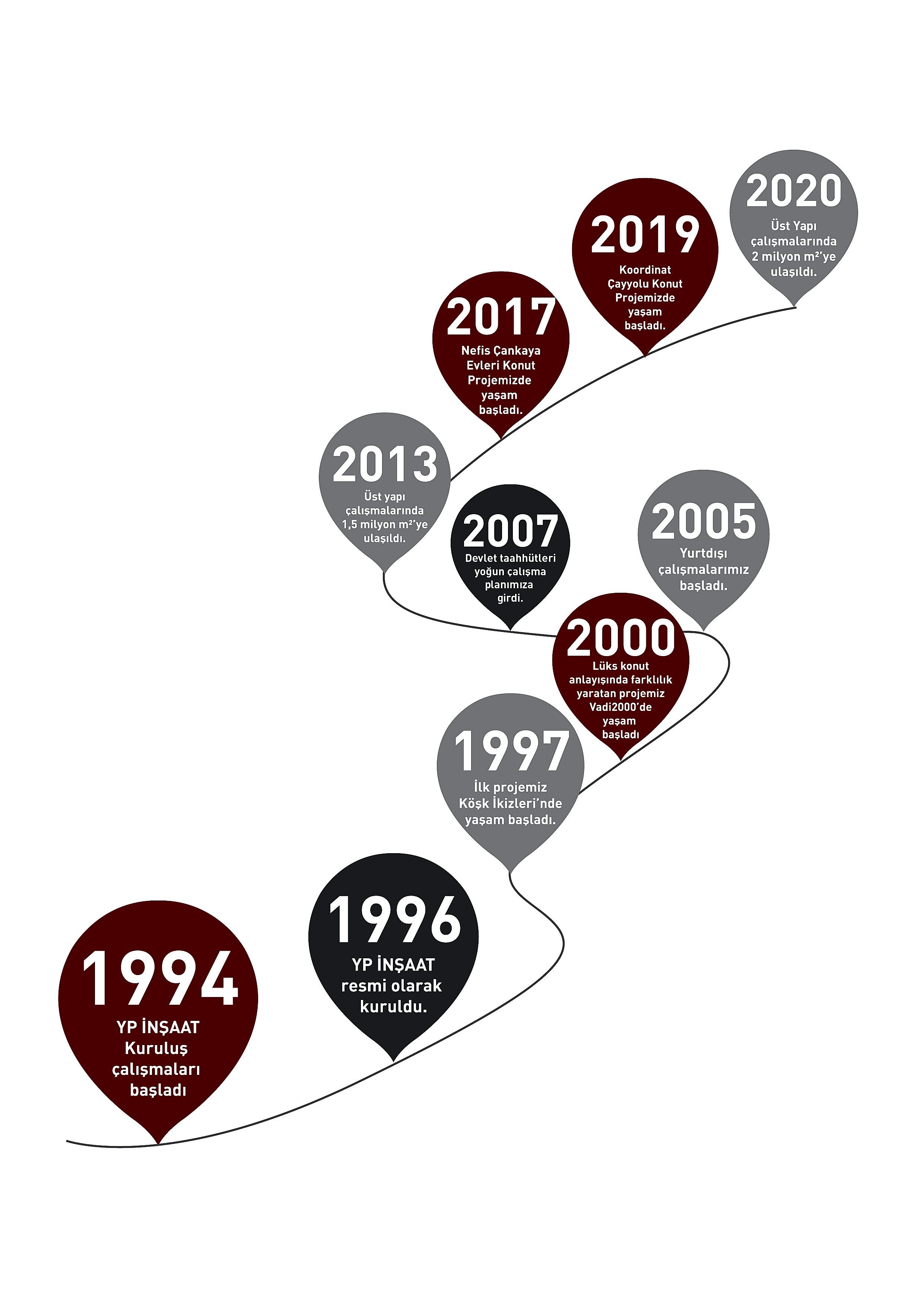 Türkiye’nin saygın müteahhit şirketleri arasında yer alan YP İnşaat 1992 yılında yatırım faaliyetlerine başlamış ve sahip olduğu mühendislik, bilgi ve deneyimlerini uygulama aşamasına getirmek amacıyla, mühendislik hizmetleri ağırlıklı inşaat, taahhüt ve yatırım faaliyetlerinde bulunmak üzere 1996 yılında bağımsız bir anonim şirket olarak YP İnşaat A.Ş. adı altında kurulmuştur. İlk kuruluş sermayesi 100.000TL olan firmanın, şu anda ödenmiş sermayesi 50.430.000TL’dir.